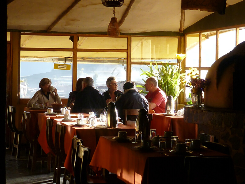 • Servicios de atención de alimentos y bebidas en acogedores ambientes, salas ó terrazas con vista al cañón. Tenemos cocina nacional e internacional y producimos en la granja nuestros propios insumos orgánicos de carne y vegetales.